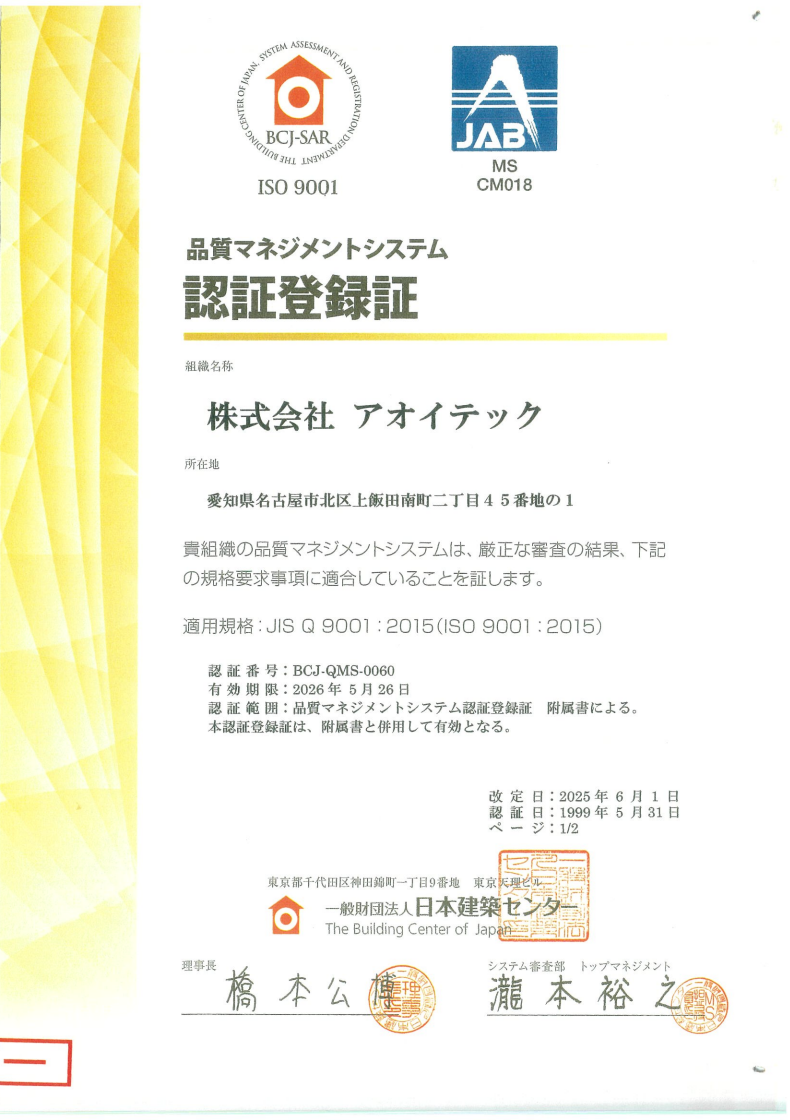 審査登録機関は、財団法人日本建築センターです。 ~ 適合供給者詳細 ~ 財団法人日本建築センターISO 9001 https://www.bcj.or.jp/